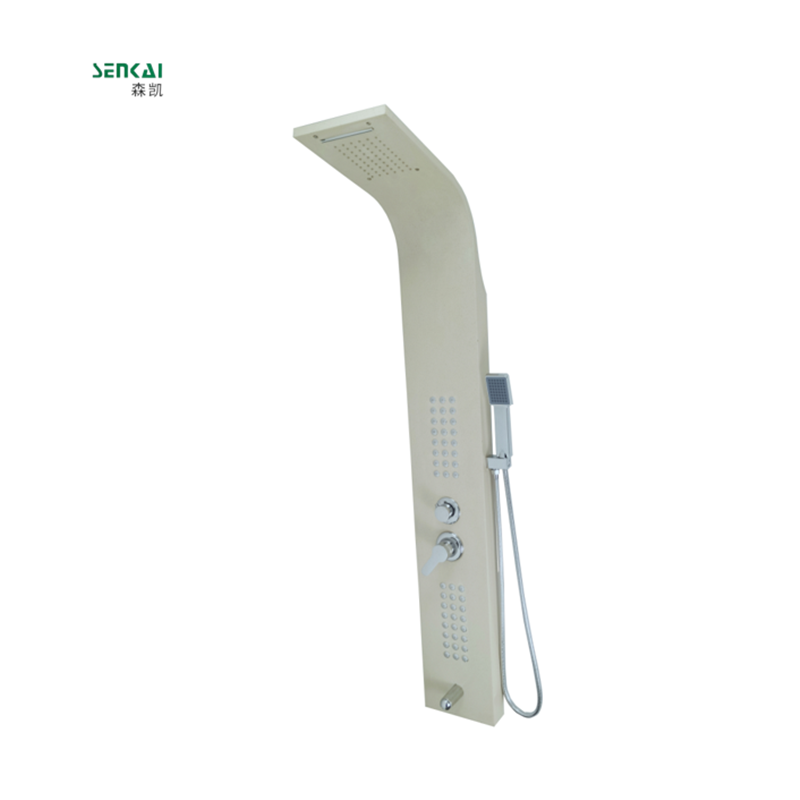 臺(tái)州森凱潔具有限公司名稱(chēng):五檔米色背噴24孔淋浴面板體重:6 kg 尺寸:1570*275*575*170mm