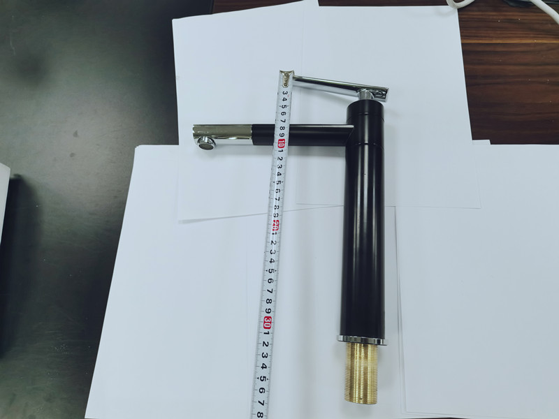 Name: Black int tube faucet with electroplated handle